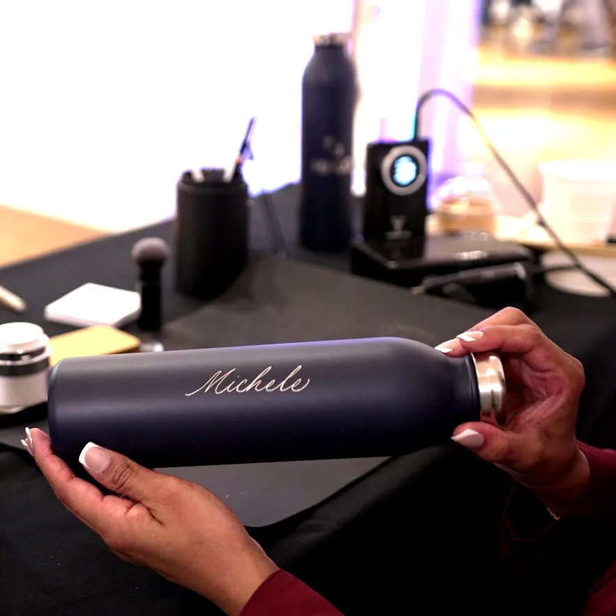 Personalization works best when it is subtle. A clean monogram or engraved initial gives the item a sense of ownership without crowding the design. It feels premium and makes people keep it longer. And when it happens on site, watching their bottle or notebook engraved in real time turns a simple giveaway into a moment.